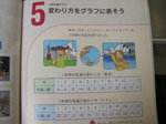 | <授業の流れ> 1.折れ線グラフと棒グラフの違い(※ICT活用の場面、棒グラフの上にトレーシングペーパーを重ねグラフの頂点に点を打ち直線で結ぶ。できた表を表示・・・・折れ線グラフ) 2.折れ線グラフの用語(※ICT活用の場面、グラフを表示しながら捉えさせる。) 3.折れ線グラフの読み取り(※ICT活用の場面) 4.折れ線グラフのかき方(各自)・・画面を使って確認(※ICT活用の場面) 5.できたグラフ(シドニー)と東京の折れ線グラフを重ねて示し、二つの都市の気温の違いを捉えさせる。折れ線グラフの特徴を捉えさせ、次時の学習に興味をもたせる。 <ICT活用の工夫> ・グラフの表を示しながら、用語やめもりりの具体的な位置を示すことで、理解しやすくすることができる。 |