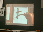 | <授業の流れ> 1.今日書く文字を確認する。 2.「お」の書き方をプロジェクタで投影し、筆の使っての書き方を説明する。(※ICT活用の場面) 3.小筆の使い方について説明する。 4.一緒に一画一画書いていく。 <ICT活用の工夫> ・みエルモんからプロジェクタで投影することで、全体で共有できる。 ・筆の持ち方から筆を使っての書き方まで、細かく説明ができる。 |