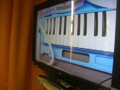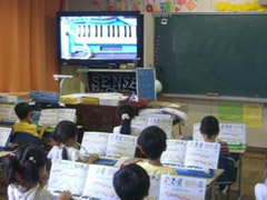 | <授業の流れ> 1.鍵盤ハーモニカ、教科書の準備 2.教師が模範演奏をし、児童は息を吹かず指の動きの確認(※ICT活用の場面) 3.指使いを確認し、実際に吹く <ICT活用の工夫> ・正しい指使いを教科書だけではなく、実際に教師がみエルモんで見せることで児童も分かりやすく学習できる。 |