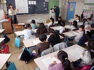 4年生の総合的な学習の時間では「みんなの幸せ」について学習しています。今日は、日野市聴覚障がい者協会、ひの手話サークルの方に来ていただき、お話を聞いたうえで簡単な手話体験を行いました。「手話って楽しい!」コミュニケーション手段の一つを知ることは子供たちにとって興味を掻き立てられたようです。