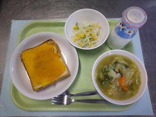 かぼちゃのスイートクリームパン、大根とコーンのサラダ、ポトフ、牛乳