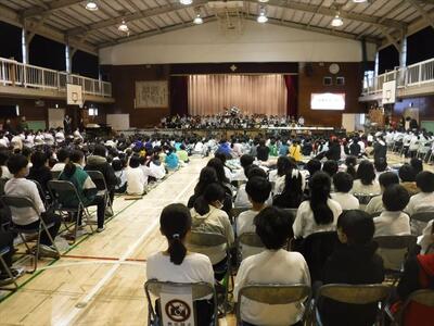 その後の始業式では、校長先生の話を集中して聞く姿や、校歌を歌っているときの姿に、新しい学年でも頑張ろうという気持ちが表れていました。