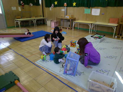 地域の保育園では、園児たちと一緒に遊んだり、読み聞かせをしたり、先生方のお手伝いや掃除を行うなど、園の活動に積極的に参加しました。