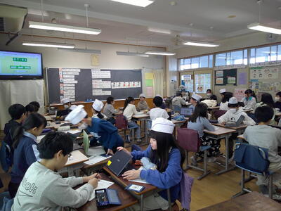 給食の時間に、潤徳小学校の皆さんが心をこめて作成してくださった「潤徳小学校紹介ムービー」を視聴しました。