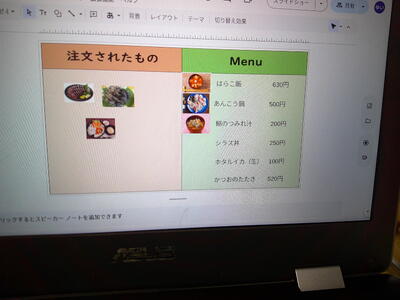 一人一台端末のスライドを使って、全員が「オリジナルレストラン」を開店できるようになりました。