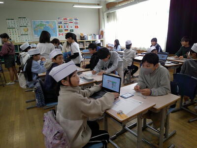 そして本日12月8日(月)の給食の時間には、いよいよ日野八小の紹介動画を全校で視聴しました。