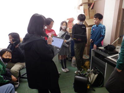 展覧会実行委員の子供たちは、各学年の作品の見どころ紹介を始めました。