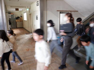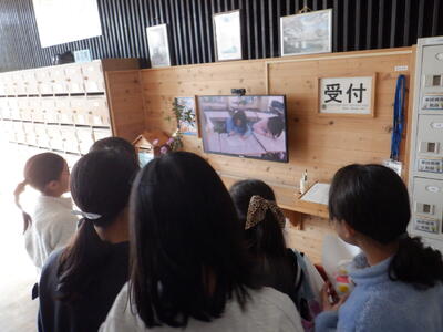 教室移動の際などに足を止めて動画に見入る子供たちです。