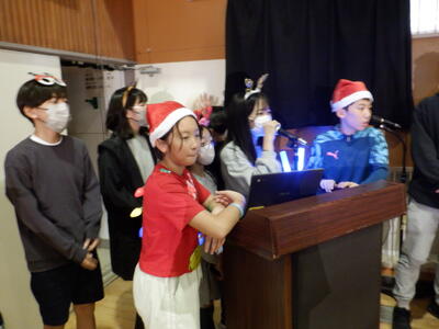 集会の進行は、児童会本部役員会の「潤クリ」担当児童たちです。