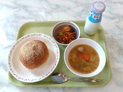 「ひのにはうまい焼きカレーパンがある!!!!!!」という日野市の取り組みがあります。これは、日野市内のパン屋がそれぞれのオリジナル焼きカレーパンを作って販売し、日野市の「まちおこし」をしようという取り組みです。今日は、給食オリジナルバージョンの焼きカレーパンです。中のカレーは、ガラムマサラなどのスパイスを使って、辛味をきかせスパイシーに仕上げました。