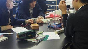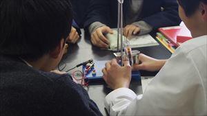 校内では動きのある授業が行われていました。2年生の家庭科では”さけのムニエル”の調理実習、理科では”電磁誘導”の実験が行われていました。