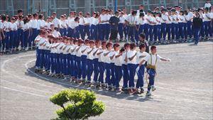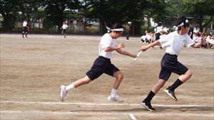 17日の午後は1年生の学年練習でした。午前中の2年生同様、個人種目の確認の後、学年種目の確認をし実際にレースを行っていました。校庭での動きは体育館と異なり思い通りではなかったようです。これから各クラスで作戦を練り直し頑張っていってほしいと思います。