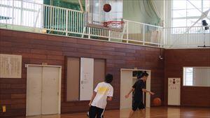 ↑↓ 体育館では男子バスケットボール部が活動中