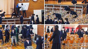 ↑↓ 椅子の整列・清掃や紅白幕に下級生は一生懸命です