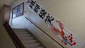 ↓ 階段には三送会の垂れ幕が飾ってあります