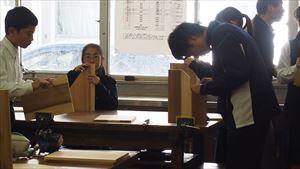 ↓ 2年生の技術科は木工の仕上げに入っています