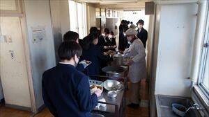 週が明ければ都立入試。今日の献立は縁起を担いで”カツカレー”。生徒には人気のメニューでお替り希望者が続出していました。ふつう盛から大盛、特盛まで出現していましたが、瞬く間にお腹の中に消えていきました。