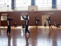 3年生の保健体育では、剣道の授業を実施しています。授業が始まったばかりなので、生徒は竹刀の使い方を身につけるために、素振りの練習に励んでいます。