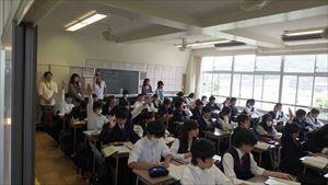 二日間の中間試験が無事終了、午後の体育館で全校集会が開かれました。”人の役に立つ活動をしよう” を目標に、ちょこっとボランティアを略して「ちょこボ」の提案が校長先生からありました。自ら企画を立て確認をとり行動します。初の取り組みですが出来上がりが楽しみです。