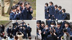 新年度のスタートは青空の下で行われました。晴天の今日、始業式は新型コロナウイルスの感染予防の関係で校庭での実施となりました。新クラス発表が待ち遠しいのか8時前に登校する生徒もいました。始業式は短時間で、その後の学活も必要最小限のみで初日は終わりました。