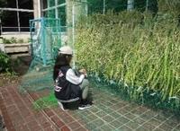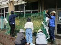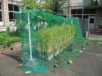 【はざかけ 網掛けをする】 【 スズメを防ぐように厳重に網掛けと案山子を設置する 】
