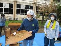 【箕を振るって選別】 【唐箕のハンドルを回して選別するわかば教室の子供たち】