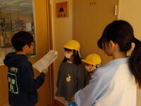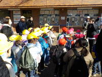 グループのお兄さんお姉さんに連れられて学校探検スタートです。