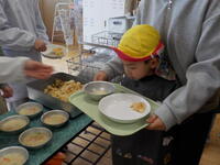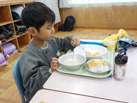 「食べられるかな・・・」とドキドキしていた給食も、一口食べるとおいしかったのか、あっというまにみんなぺろり。