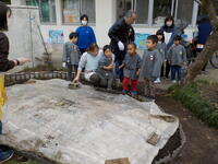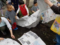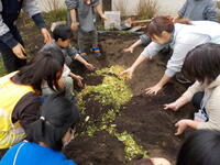 土と混ぜながら「スーパー菌ちゃんになるといいね」と楽しんでいました。