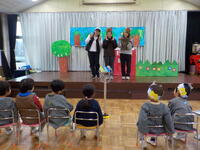 最後にたくさん楽しい絵本を読み聞かせてくださったはなだいこんさんにつき組からプレゼントを渡しました。
