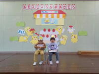 たいよう組によるお祝いの言葉では、今まで一緒にやって楽しかったことや小学生になるつき組へのメッセージを伝えました。