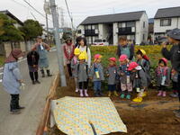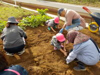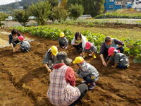 サツマイモを育ててくれた地域の方に感謝の気持ちをこめてお礼をしたら、いよいよお芋ほりのスタートです。