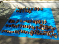 幼稚園でみんなの掘ったサツマイモを並べてみると、大きいものや小さいもの、丸いものや細長いもの、太いもの等形も様々ありました。