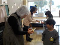 最後にたくさん楽しい絵本を読み聞かせてくださったはなだいこんさんにつき組からプレゼントを渡しました。