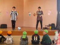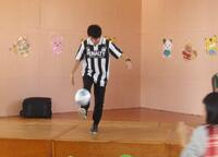 フリースタイルフットボール体験として、コーチが2名来園してくれました。まずは、2人のコーチによるボールの技を見せてもらいました。