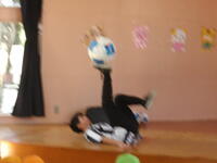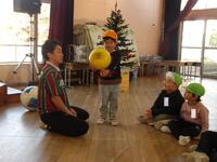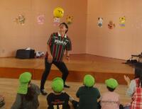 最後には、子ども達にも体験させてもらいました。背中に乗せる技、ボールを1本の棒の上にのせて回す技を体験させてもらいました。