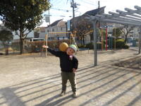 すみれ組個人競技では、「強い体を作るぞ!」ということ目指し、いろいろな遊具を活用して、走る、跳ぶ、くぐる、よじ登る、飛び降りる、ぶら下がる、持ち上げるなどの動きが経験できるように取り組んできました。最後は、バーベルを持ち上げて「もりもりマッチョ」に変身です。