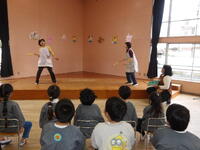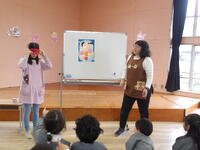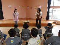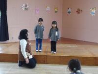 続いては、さくら組とすみれ組の発表です。「おじいちゃんおばあちゃんの家でおいしいものをいっぱい食べた。」「サーカスを見に行った。」「お姉ちゃんと福笑いをした。」「お姉ちゃんとこままわしをした。」等のお話でした。家族の皆さんと楽しい冬休みを過ごした光景が目に浮かぶようでした。