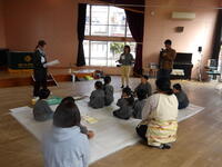 「さよならさんかくまたきてしかく しかくは豆腐 豆腐は白い 白いはうさぎ...」と、昔から歌い継がれてきた連想遊びの歌を楽しんでいました。