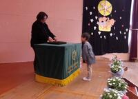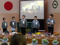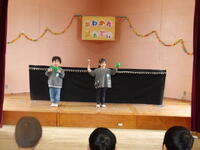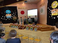 子供たちの出し物では、一年間の思い出をスライドの画像に合わせて、一人一人が自分の言葉で思い出を話していきました。