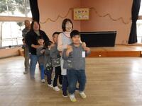 その子供たちの願いにこたえ、ヒノソングの歌い手である志水雅弘さんがサプライズゲストとして来園し、演目に参加してくださいました。志水さんの生歌に合わせてみんなで踊りました。