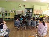 4月から、進級・進学し新しい生活がはじまる子供たちに、日野橋駐在所警部補の伊豆本さんが来園し、交通安全指導をしてくださいました。