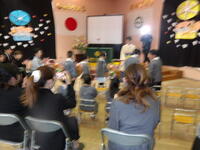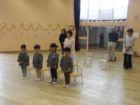 まずは、みんなで顔を合わせ クラスの名前や先生たちの紹介をし合いました。第二幼稚園5歳児はつき組・4歳児はたいよう組です。