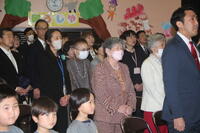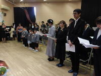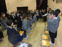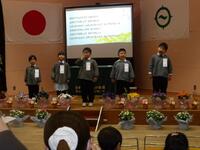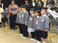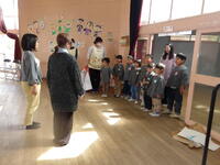 さくら組から「おわかれの言葉と歌歌詞を、これまで先生や友達と一緒に過ごしてきた思い出や、お世話になった地域や保護者の方に感謝の気持ちを言葉にして伝えました。歌は、元平山児童館館長であり、現みさわ児童館で勤務されている斎藤明彦さんが、第四幼稚園のために作詞・作曲してくださった『今日もよろしくね』をさくら組が修了式ver.にアレンジをして歌いました。