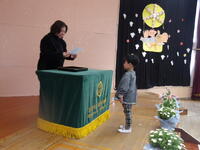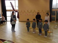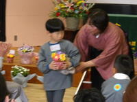 園長先生から、修了証書が一人ずつ授与されました。さくら組は大きくなったらなりたいこと・幼稚園で遊んで楽しかったことをそれぞれ話しました。