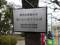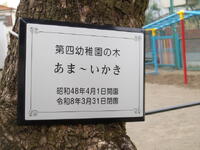 閉園記念品として、第四幼稚園の園庭にある3本の木に、子供たちが可愛いニックネームをつけて作成したネームプレートを取り付けました。