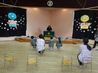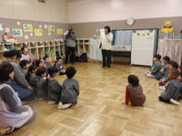 2月もみんなが楽しみにしていたはなだいこんの宮田先生と山口先生が来園し、絵本の読み聞かせをしてくださいました。今回は、節分や冬のお話をテーマに読み聞かせをして頂きました。