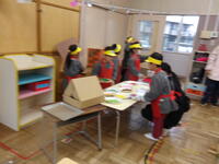 そして、すみれ組は、さくら組に「ありがとう」の気持ちの伝え方を考えていきました。「さくら組さんが楽しんでくれるかな?」と何日も話し合いを重ね、出し物やプレゼントの内容を考え準備をしていきました。