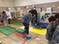 3月3日は第二幼稚園との交流のひでした。同じ市立幼稚園に通う友達の存在を知り、一緒に過ごす楽しさを感じられるように、好きな遊びをはじめ、ひなまつりの集いとコオーディネーションの活動を一緒に行いました。