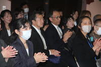 子供たちの元気な掛け声に志水さんの力のこもった歌声と竹太鼓を打つ音が、ホール中に響き渡りました。